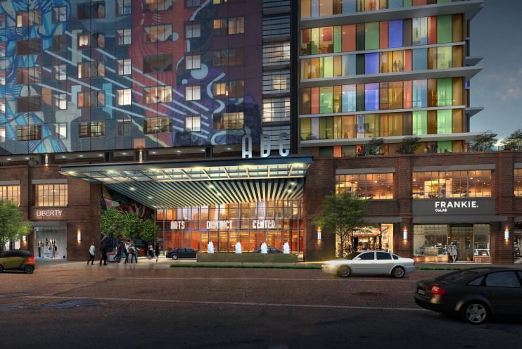 Type 1 Tower Featuring Artistic PV Curtain Wall & Automated Parking in a Mixed Us Condominum & Boutique Hotel Structure in the Arts District LA
